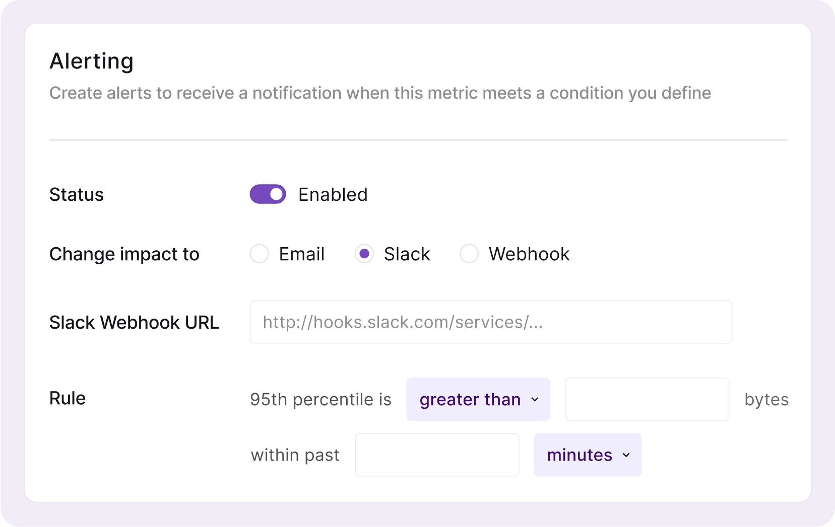 Address web and mobile performance issues before they become pervasive. Send alerts via email, Slack, Pager Duty, or webhook whenever a metric exceeds or drops below a threshold you’ve set.